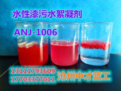 中才蓝工ANJ-1006水性漆污水净化剂;是本公司根据涂装企业的需求,研制开发的新一代安全绿色科技产品,无毒、不燃、不挥发、无需加酸或碱调PH值,使用造价低、见效快、使用方法简便,对水性漆和油漆污水絮凝效果优异。
